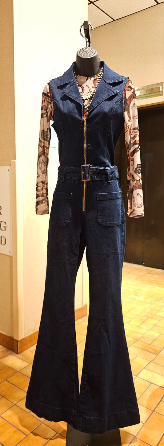TWO PIECE LOOK LAPEL VEST DENIM ROMPER 4498RIAu