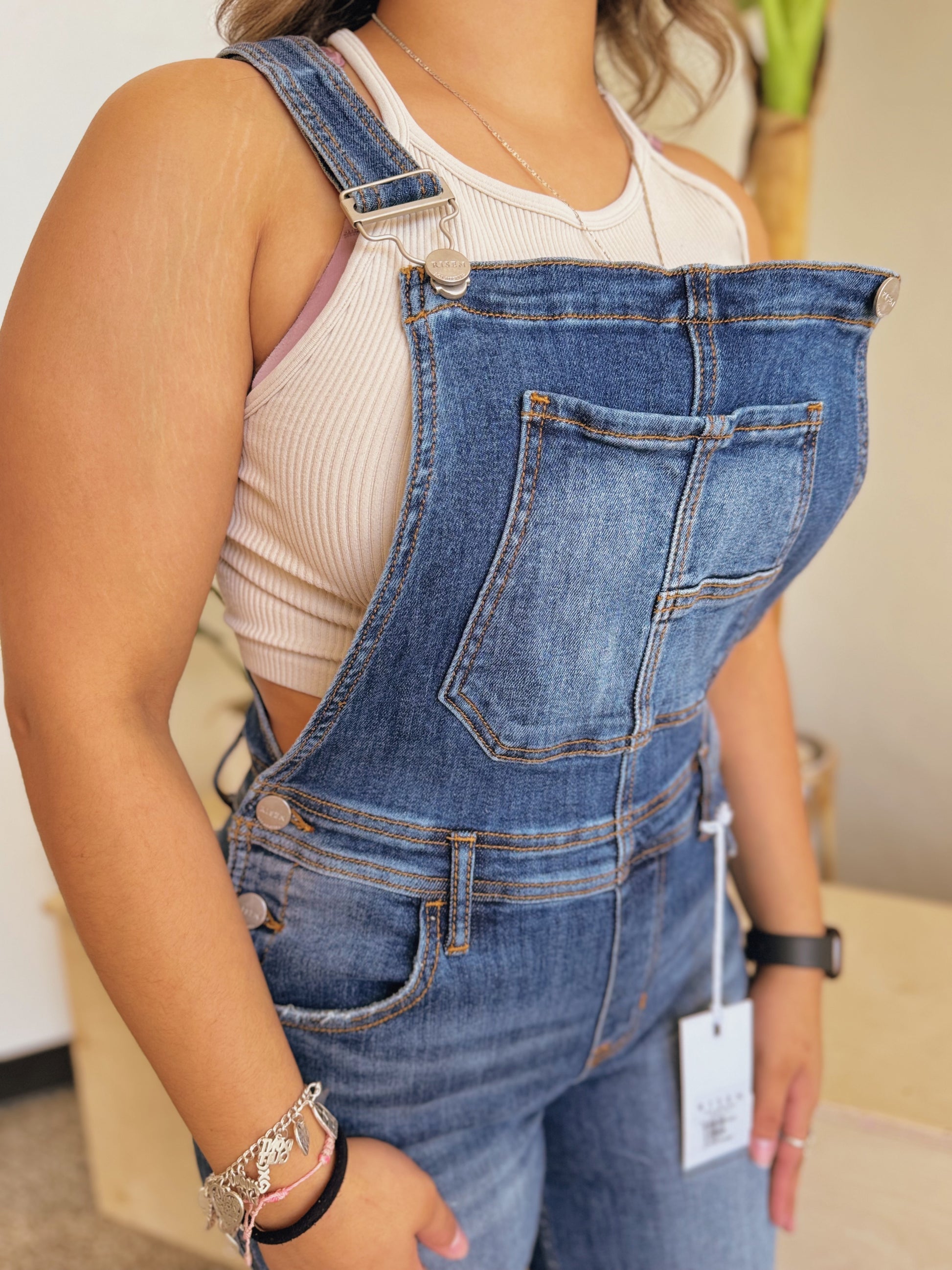 Dark denim wide leg overalls