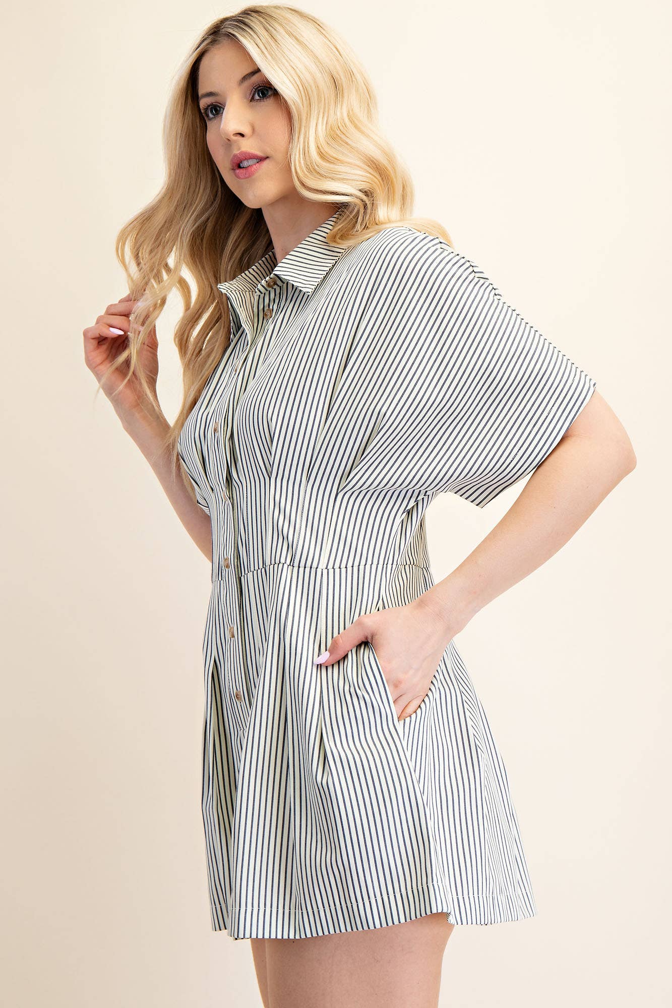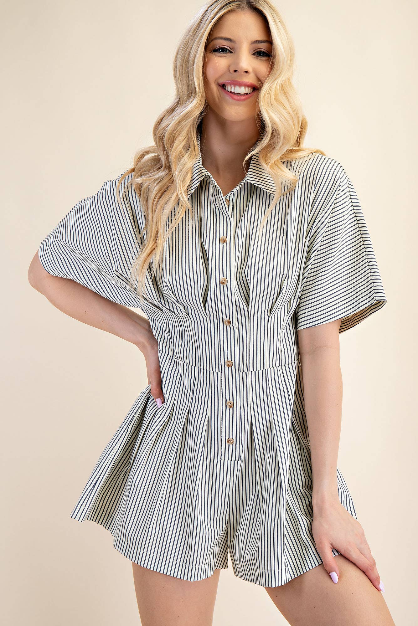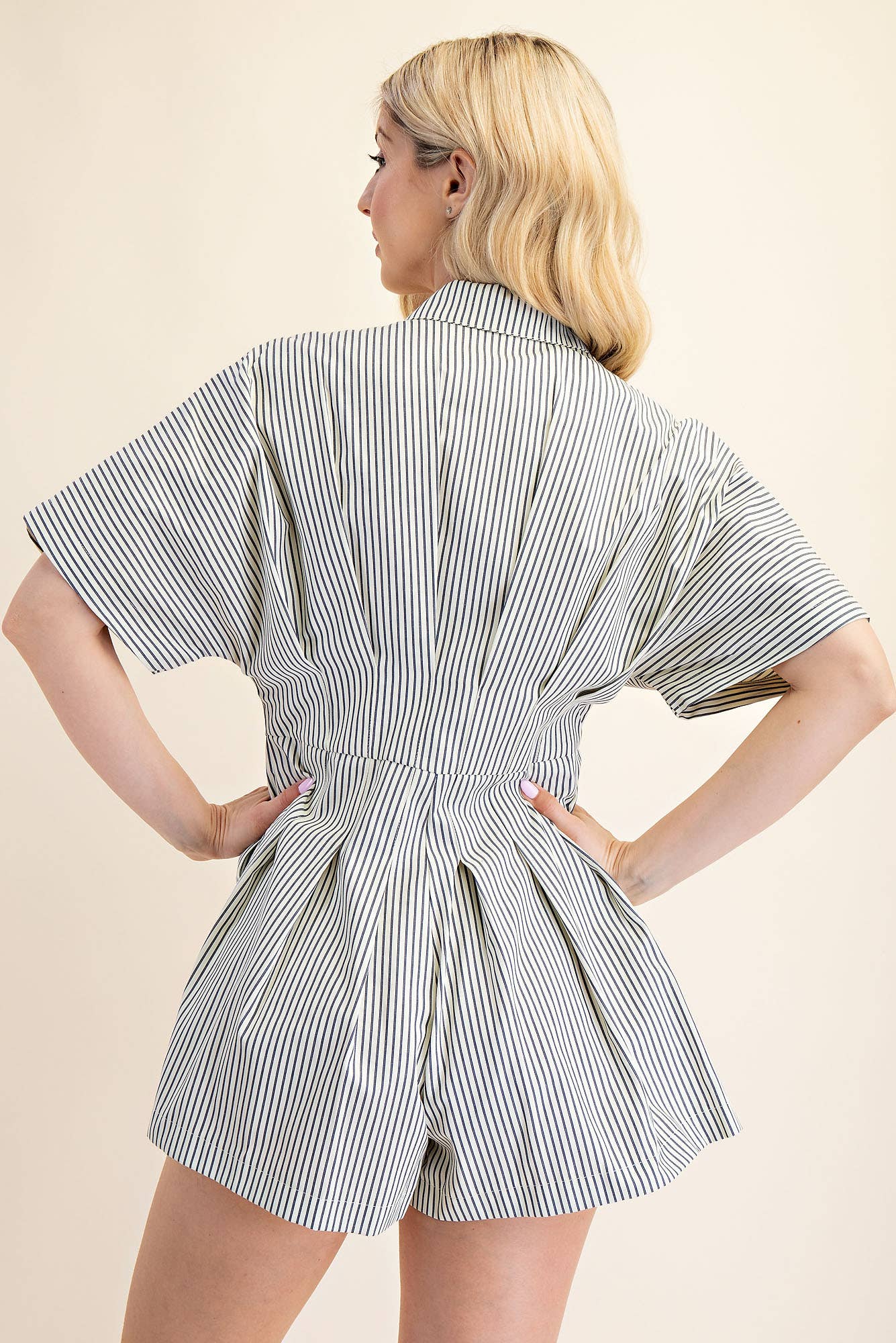 Collar Neck Waist Pleated Romper