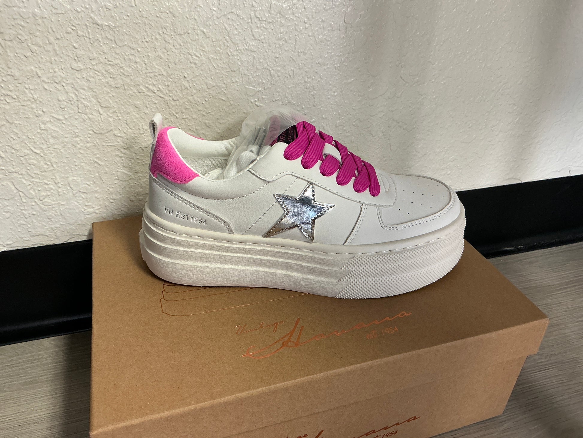 Neon Pink Laced Silver Star White Wedged Mid Top BB