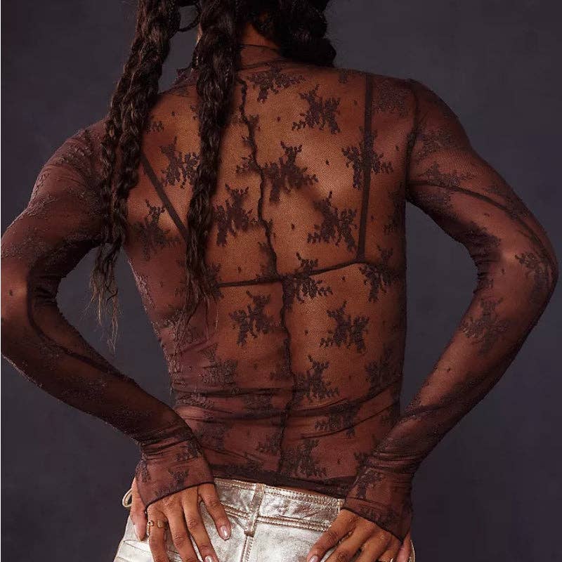 Lux Layering Floral Lace See Through Mesh Top Blouse