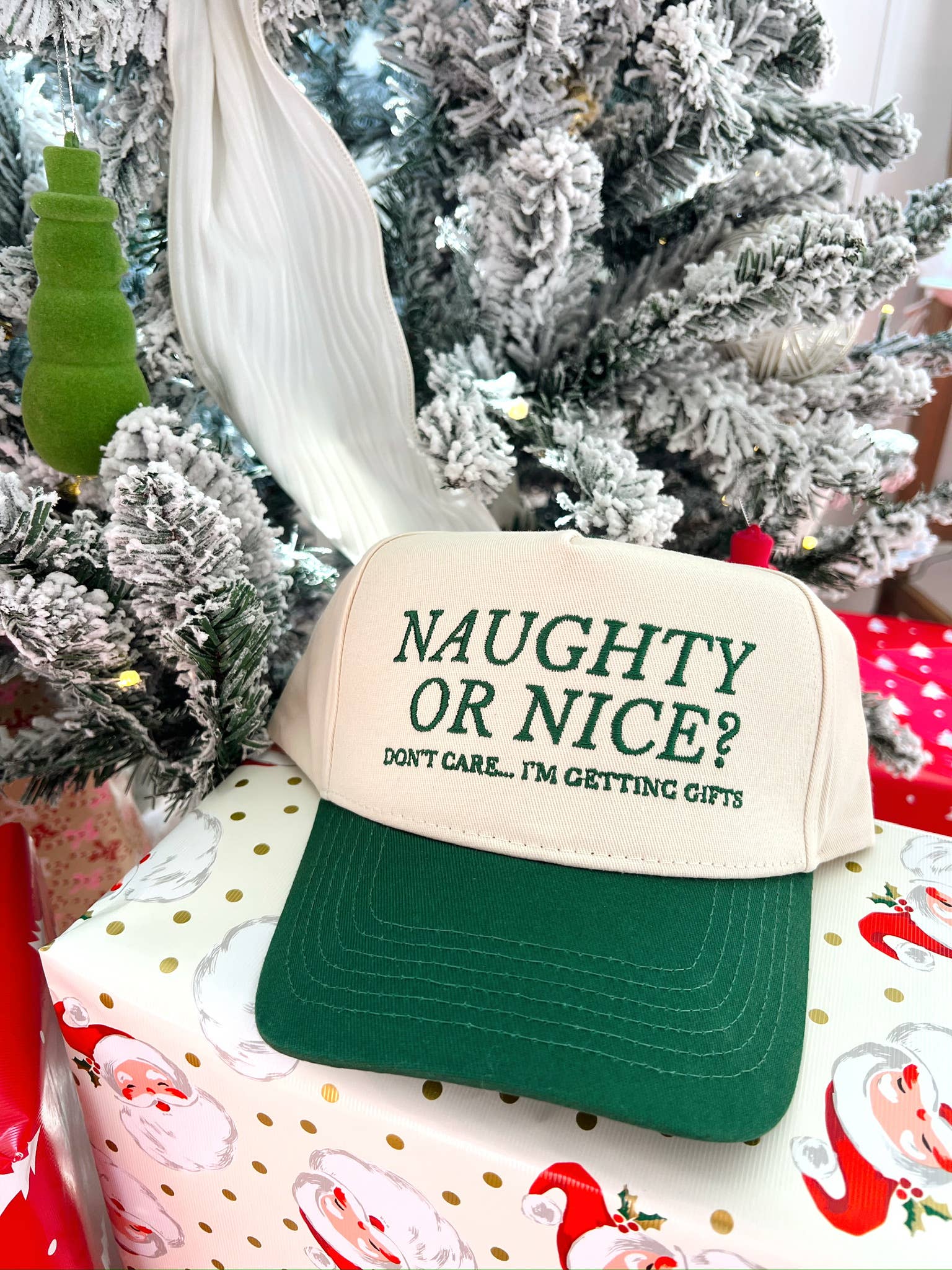 Naughty or Nice? Don't Care - Green Vintage Trucker Hat