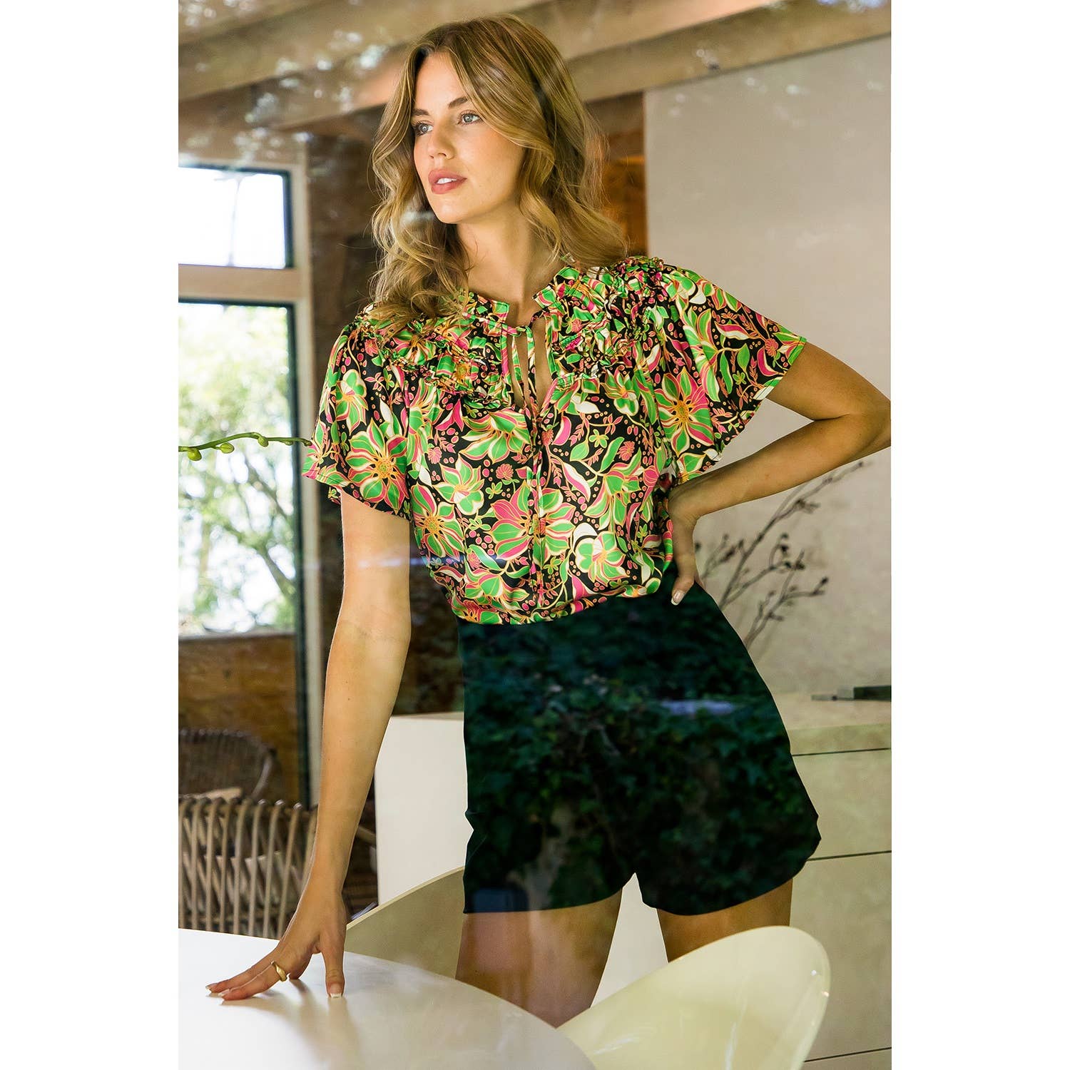 Short Sleeve Flower Print Top