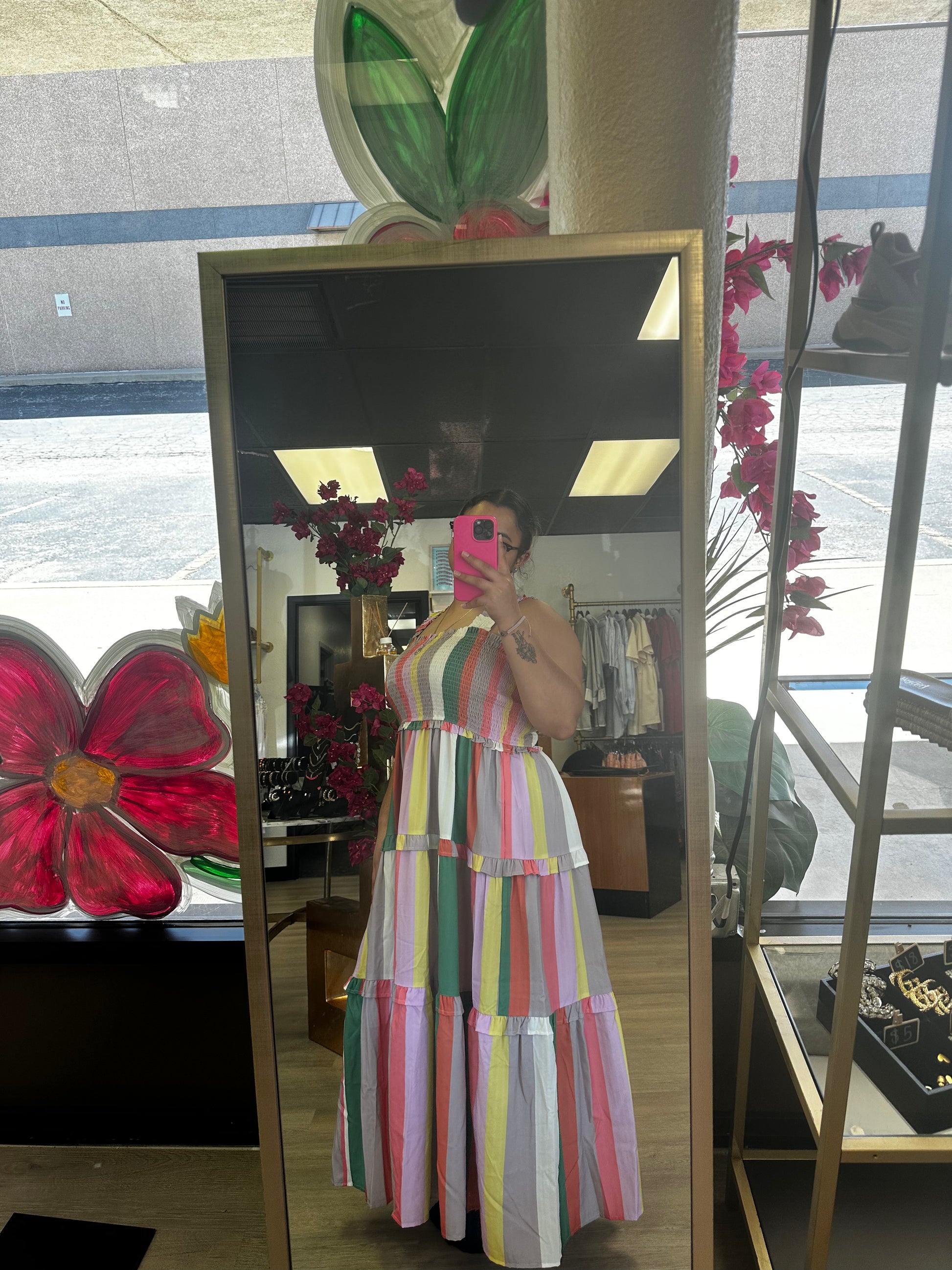 The perfect summer dress in multicolor. Show off your new style with class.